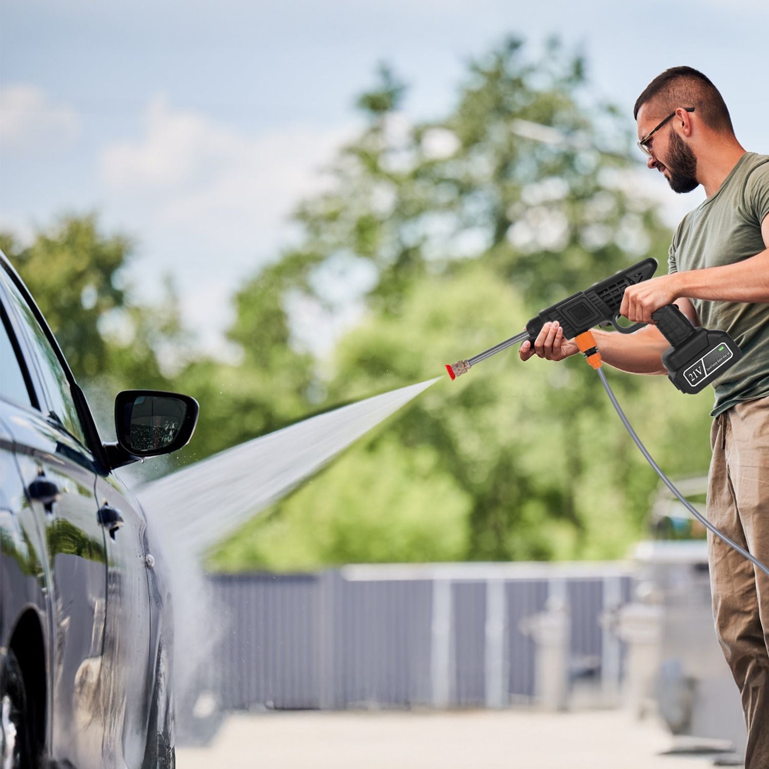 Versatile Usages: The portable and lightweight pressure washer can be not only used to clean cars, bikes, motorcycles, etc., but also for balconies, windows, decks, exterior walls, floors, fences, gardens, etc., or the places that are difficult to clean manually.